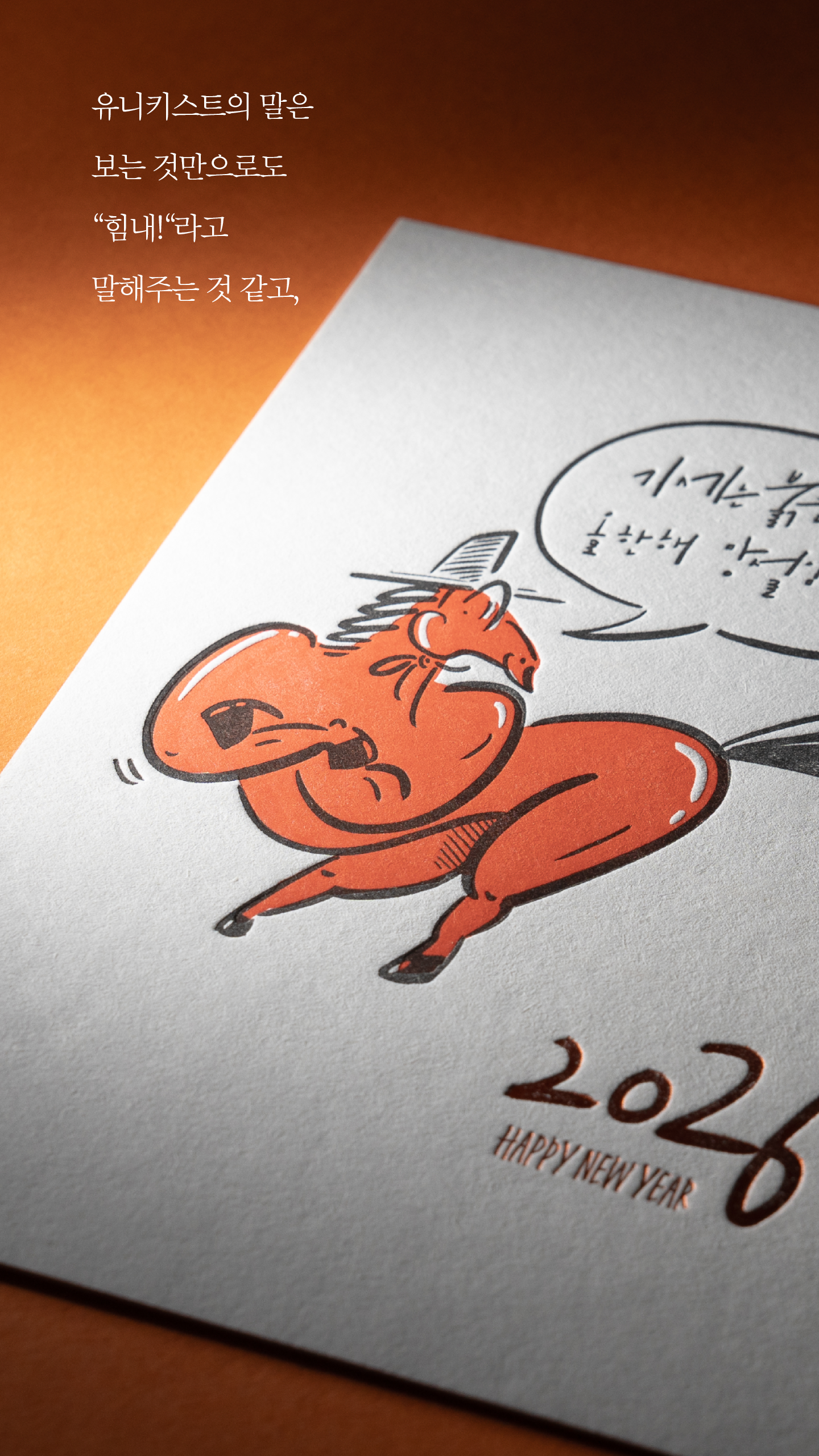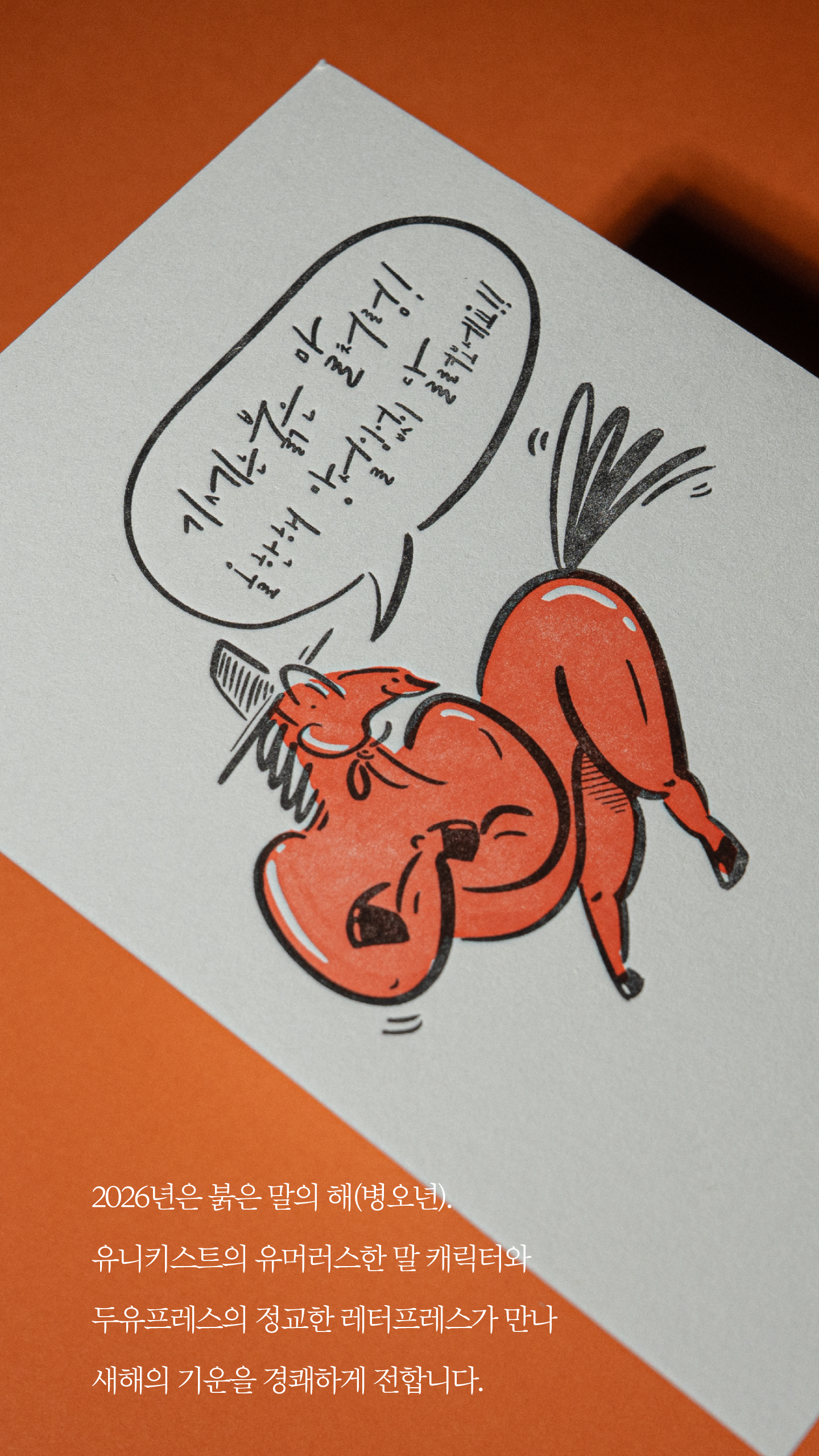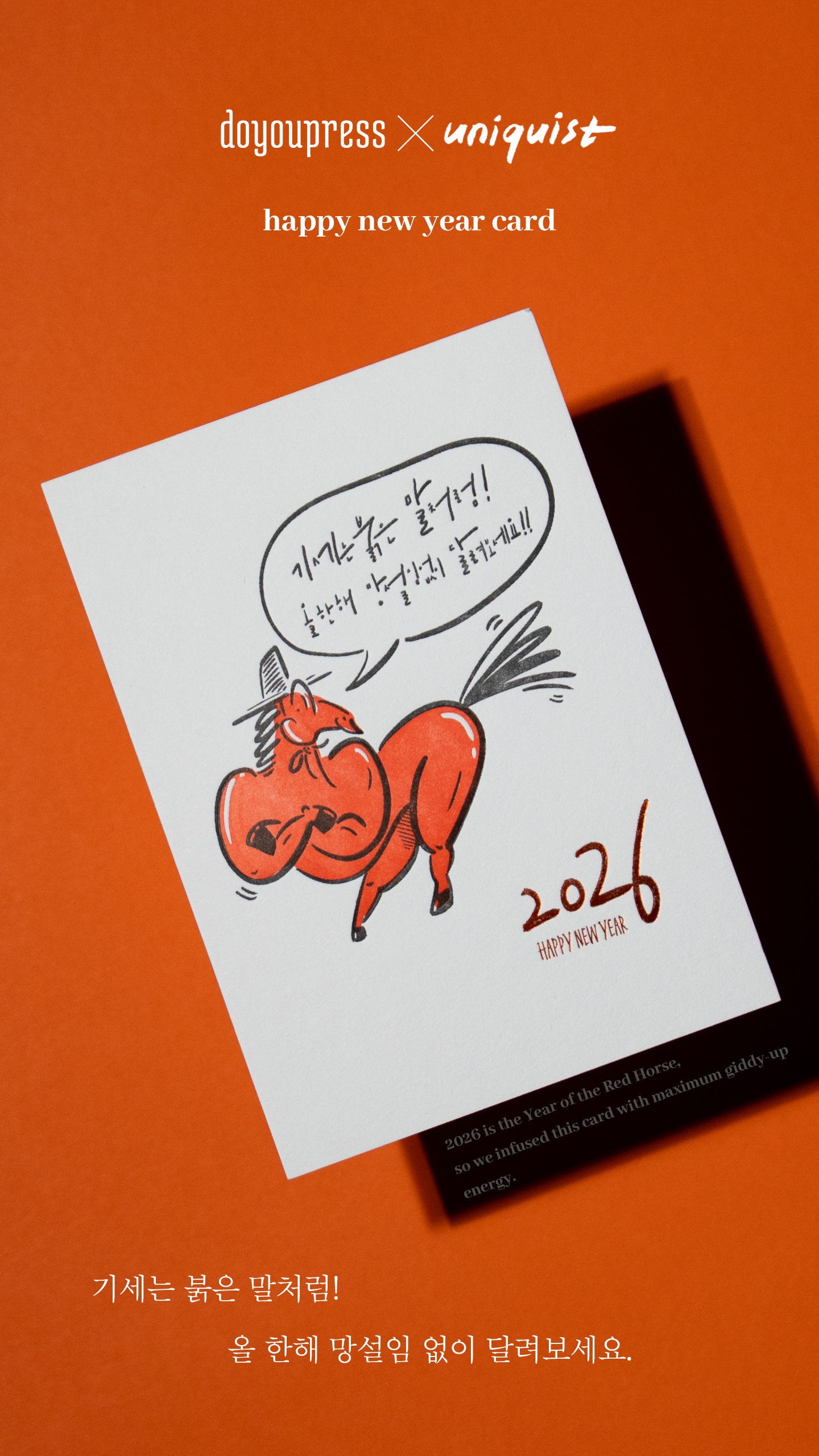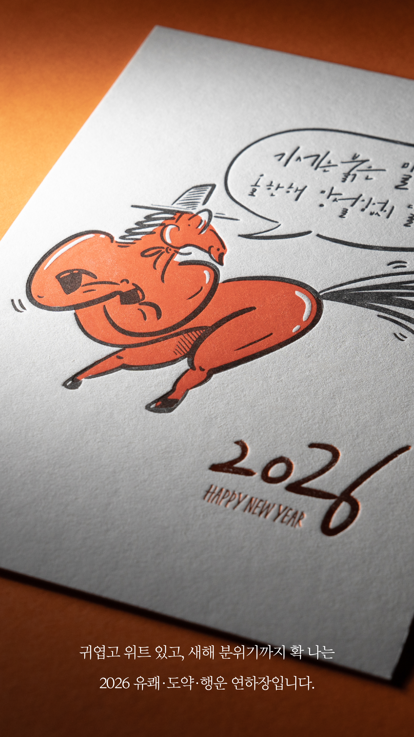 2026 붉은 말의 해를 힘차고 유쾌하게 담아낸 프리미엄 연하장입니다.